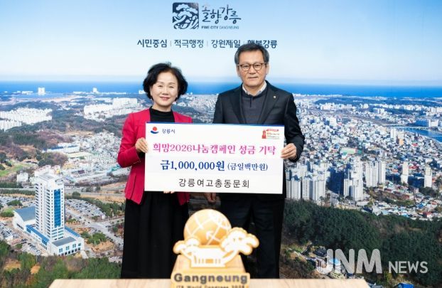 제이앤엠뉴스 | 강릉여고 총동문회(회장 우명숙)가 설 명절을 앞두고 29일(목) 강릉시에 현금 100만 원을 기탁하며 희망 나눔 캠페인에 동참했다.