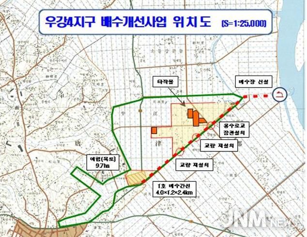 제이앤엠뉴스 | 당진시는 우강면 성원리·강문리·소반리·신촌리·승산리·창리 일원의 우강4지구 배수개선사업이 농림축산식품부 기본조사 대상지로 최종 선정됐다고 30일 밝혔다.