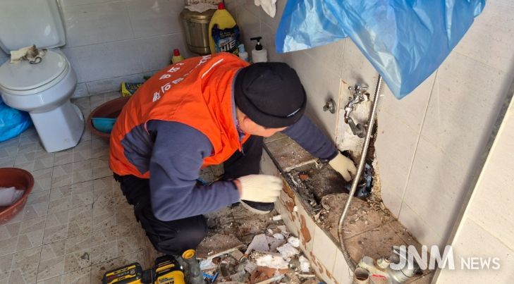 제이앤엠뉴스 | 강화군 강화읍 지역사회보장협의체(위원장 김용우)가 최근 강화읍에 거주하는 기초생활수급자이자 장애인 가구를 긴급 방문해 동파 수리 무료 봉사를 실시했다고 밝혔다.
