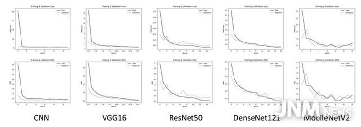 이를 위해 이미지 학습에 널리 활용되는 합성곱신경망(CNN) 기본 모델과 함께, VGG16, ResNet50, DenseNet121, MobileNetV2 등 CNN 기반 전이학습 모델을 적용해 예측 성능을 비교·분석했다.