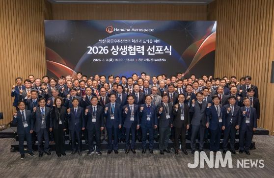 제이앤엠뉴스 | 창원특례시는 2월 3일 한화에어로스페이스가 창원3사업장에서 개최한 ‘협력사 상생협력 선포식’을 환영한다고 밝혔다. 이번 선포식에는 손재일 한화에어로스페이스 대표이사와 상생협력 협의회 회원사, 김경수 지방시대위원회 위원장을 비롯한 정부 주요 인사, 김종양·허성무 국회의원, 경남도, 창원시 관계자가 참석해 지역 및 방위산업 발전을 위한 협력의지를 공유했다.