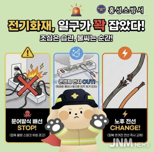 제이앤엠뉴스 | 홍성소방서는 겨울철 난방기기 사용 증가로 전기화재 발생 위험이 높아짐에 따라, 전기화재 예방을 위한 집중 안전관리를 추진한다고 밝혔다.