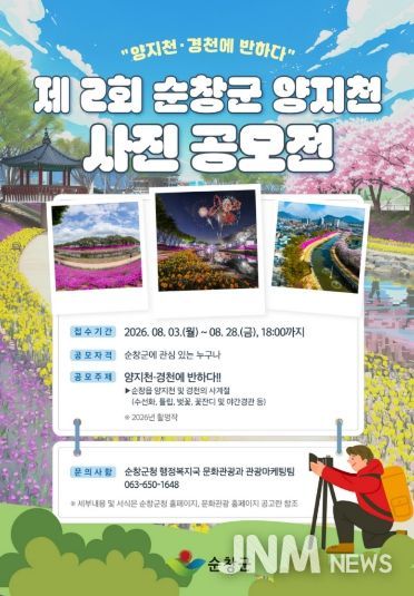 이번 공모전은 순창읍을 흐르는 양지천과 경천의 사계절 풍경과 감성적인 경관을 주제로, 사진을 통해 순창의 매력을 새롭게 조명하고 향후 관광 홍보 콘텐츠로 활용하기 위해 마련됐다.