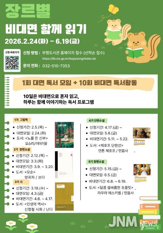제이앤엠뉴스 | 인천광역시교육청부평도서관은 2월 24일부터 6월 19일까지 ‘장르별 비대면 함께 읽기 프로그램’을 운영한다.