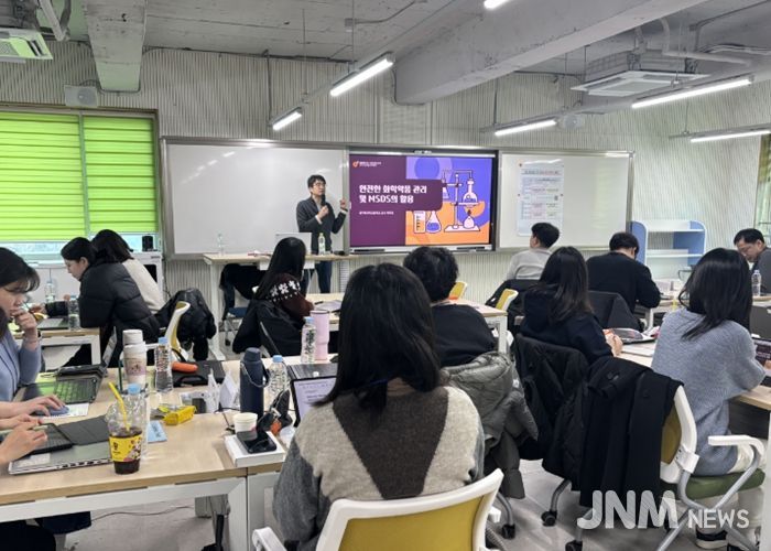 5일 연수의 주요 내용은 ▲과학실험실 안전관리의 실제 ▲안전한 화학약품 관리 및 MSDS 활용 ▲사례로 알아보는 과학실험실 안전 등 학교 현장에서 바로 적용 가능한 실습·사례 중심 프로그램이 운영됐다.