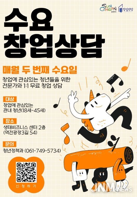 제이앤엠뉴스 | 순천시가 창업에 어려움을 겪는 청년 창업자와 예비 창업자를 대상으로 '2026년 수요창업상담'을 연중 운영한다.