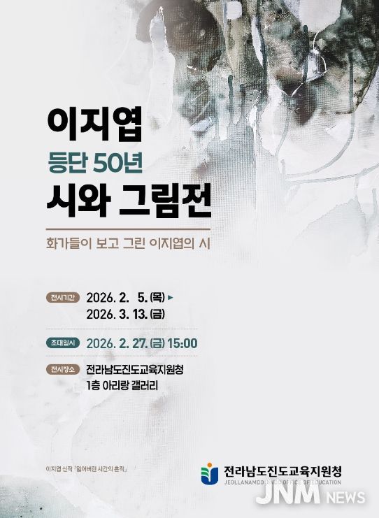 제이앤엠뉴스 | 전라남도진도교육지원청은 2월 5일부터 3월 13일까지 아리랑 갤러리에서 이지엽 시인 등단 50년을 기념하는 『시와 그림展』을 개최한다.