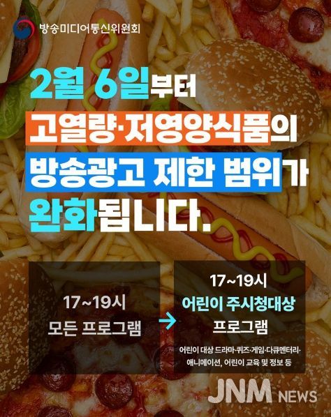 제이앤엠뉴스 | ■ 2월 6일부터 고열량·저영양식품의 방송광고 제한 범위가 완화됩니다.