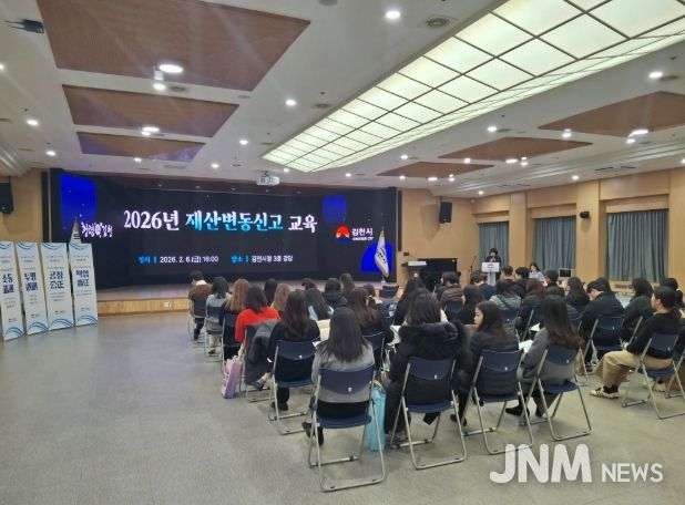 제이앤엠뉴스 | 김천시는 2월 6일 시청 3층 강당에서 직원 70여 명을 대상으로 ‘2026년 정기 재산변동신고 대비 맞춤형 교육’을 실시했다.