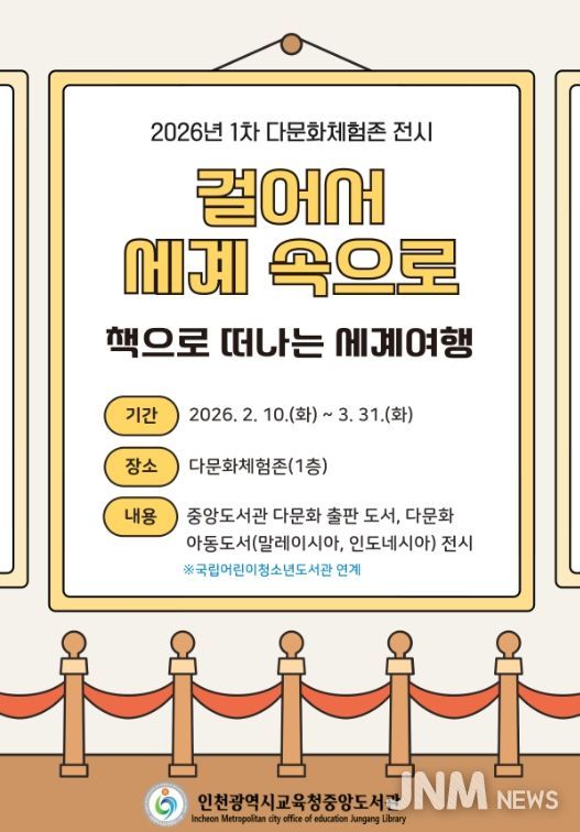 제이앤엠뉴스 | 인천광역시교육청중앙도서관은 2월 10일부터 3월 31일까지 1층 다문화체험존에서 ‘책으로 떠나는 세계여행’ 전시를 개최한다.