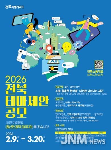 제이앤엠뉴스 | 전북특별자치도가 인공지능(AI)을 활용한 도정 혁신 아이디어를 찾기 위해 도민과 공무원을 대상으로 대규모 정책 제안 공모에 나선다.