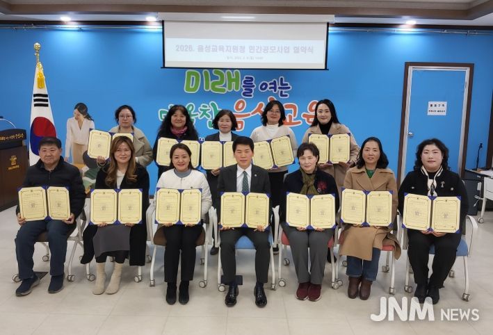 제이앤엠뉴스 | 음성교육지원청은 2026학년도 음성교육지원청 민간공모사업 대상자를 2월 9일 확정하고, 선정 기관과 협약식을 개최했다.
