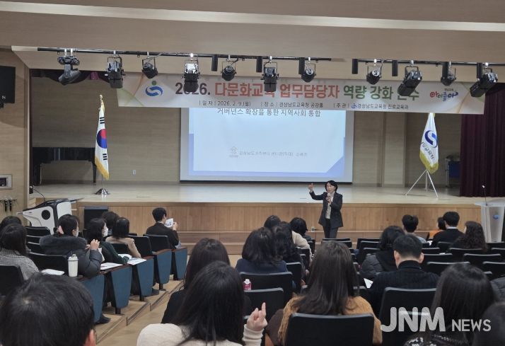 제이앤엠뉴스 | 경상남도교육청은 9일 본청 별관 3층 공감홀에서 시군 교육지원청과 학교 현장의 업무 담당자를 대상으로 '2026년 다문화교육 역량 강화 연수'를 열었다.