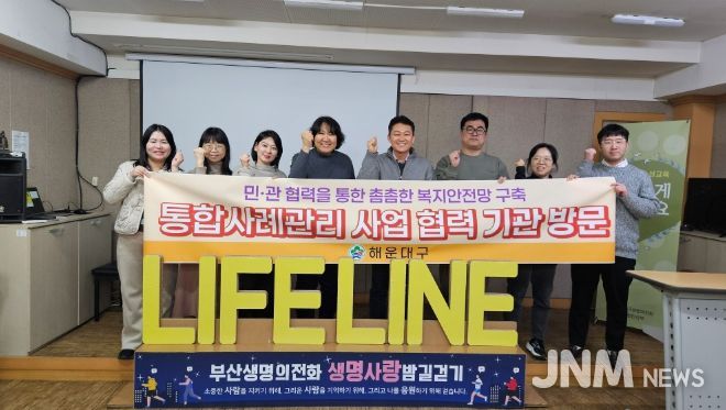 제이앤엠뉴스 | 해운대구는 통합사례관리 사업의 효과적인 추진과 지역사회 복지안전망 강화를 위해 부산생명의전화와 부산광역시사회서비스원을 방문하고, 민·관 협력 기반의 연계 방안을 논의했다고 밝혔다.