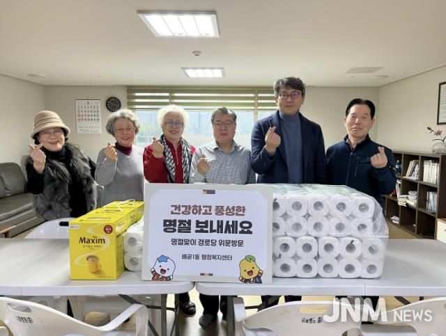 제이앤엠뉴스 | 시흥시 배곧1동 행정복지센터는 설을 맞아 지난 2월 10일 관내 경로당 11곳을 방문해 어르신이 따뜻한 명절을 보낼 수 있도록 위문품을 전달했다.