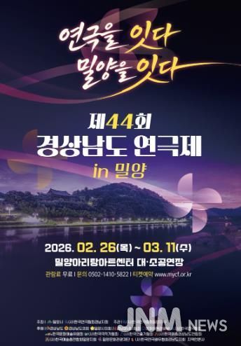 제이앤엠뉴스 | 밀양시는 경남 연극인들의 최대 축제이자 경연대회인 ‘제44회 경상남도 연극제’가 오는 2월 26일부터 3월 11일까지 14일간 밀양아리랑아트센터에서 개최된다고 밝혔다.