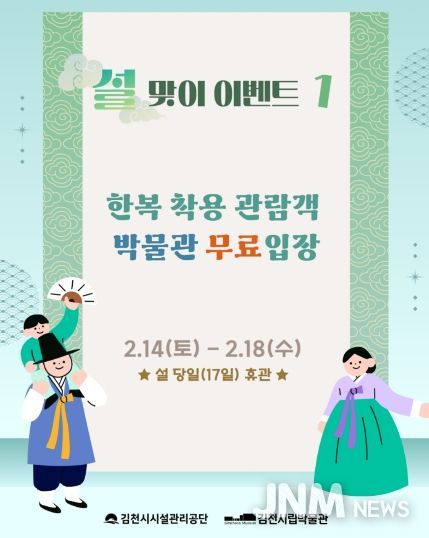 제이앤엠뉴스 | 김천시시설관리공단(이사장 김재광)은 2026년 설 명절을 맞아 감문국이야기나라와 김천시립박물관을 중심으로 가족 단위 관람객이 함께 즐길 수 있는 ‘설맞이 문화 행사’를 운영한다. 이번 행사는 2월 14일부터 2월 18일까지 진행된다.
