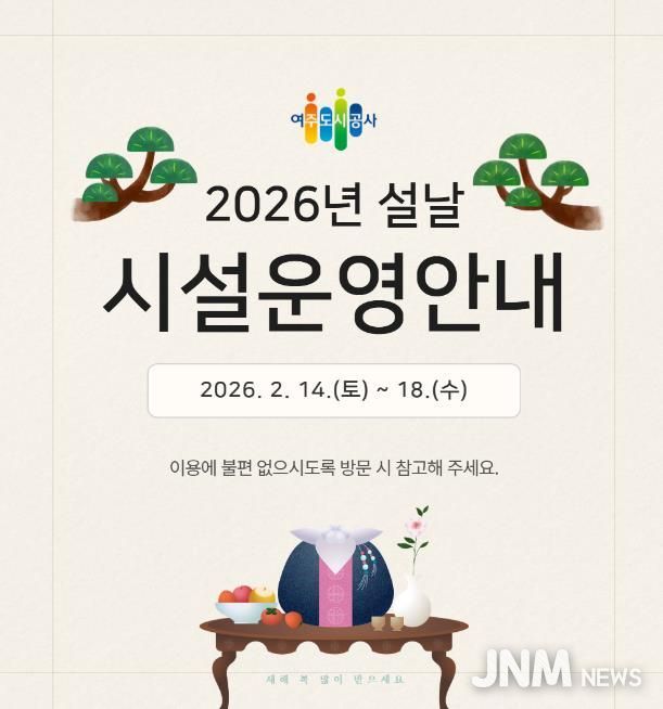 제이앤엠뉴스 | 여주도시공사가 다가오는 2026년 설 연휴를 맞아 시민과 귀성객들이 안전하고 편안한 명절을 보낼 수 있도록 주요 시설 운영시간 조정 및 특별 서비스를 시행한다고 밝혔다.
