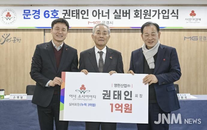 제이앤엠뉴스 | 문경시는 지난 19일 문경 최초 아너소사이어티 실버 회원인 권태인 대표의 가입식을 개최했다.