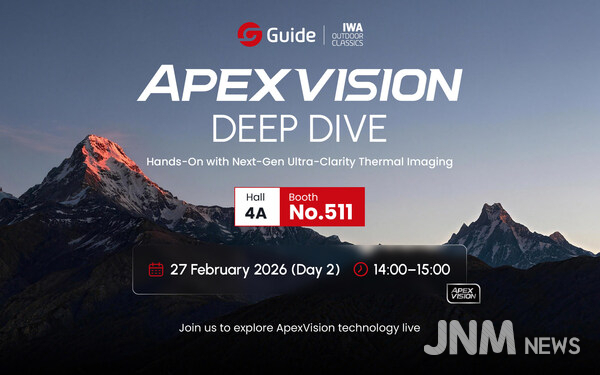 제이앤엠뉴스 | 뉘른베르크, 독일 2026년 2월 27일 -- 열화상 기술의 선도기업 가이드(Guide)가 IWA 아웃도어클래식(IWA OutdoorClassics)에서 ApexVision 기반의 신규 아웃도어 제품을 선보인다. 이번 신기술은 적외선 화질의 초고선명 혁신을 구현했으며, 현장 방문객들은 단순한 설명을 넘어 라이브 체험 세션을 통해 직접 기능과 성능을 경험할 수 있다. 4A-511 부스를 방문하면 신형 경량 Orion C 시리즈 클립온 열화상 어태치먼트를 직접 시연해 볼 수 있다.