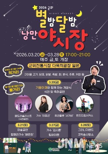 제이앤엠뉴스 | 군위군이 군위전통시장 활성화와 지역민, 관광객을 위한 야시장 행사를 3월 20일부터 3월 28일까지 매주 금요일과 토요일에 개최한다.