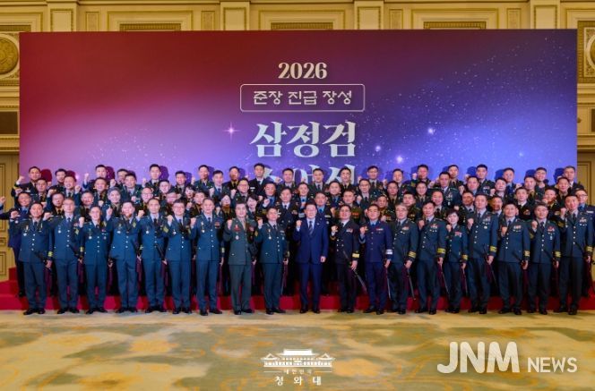 제이앤엠뉴스 | 이재명 대통령이 청와대 영빈관에서 열린 준장 진급자 삼정검 수여식에 참석해 77명의 신임 준장에게 삼정검을 전달했다.