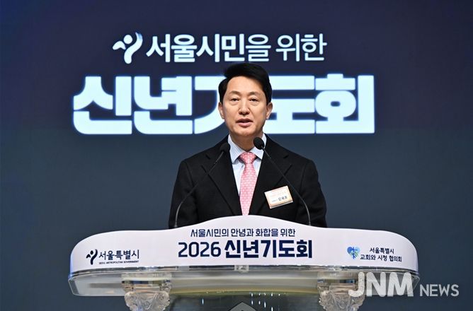 제이앤엠뉴스 | 오세훈 서울시장이 9일 오전 신길교회에서 열린 '2026 신년기도회'에 참석해 서울 시민의 평안과 단합을 기원했다.