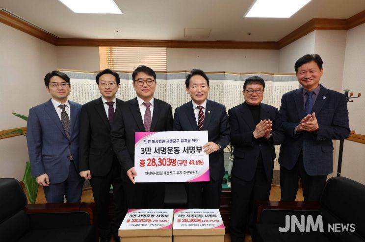 김찬진 동구청장은 "오늘 전달한 서명부에는 구민들의 뜨거운 염원과 간절한 목소리가 담겨 있다"며 "새롭게 태어나는 제물포구가 대한민국 해양 사법의 중심지로 우뚝 설 수 있도록 법원행정처의 현명한 판단을 당부드린다"고 말했다.