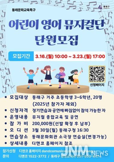 동래구 관계자는 "어린이들이 노래와 춤을 통해 자연스럽게 영어를 배우고, 창의력과 자신감을 키울 특별한 기회가 될 것으로 기대한다"고 전했다.