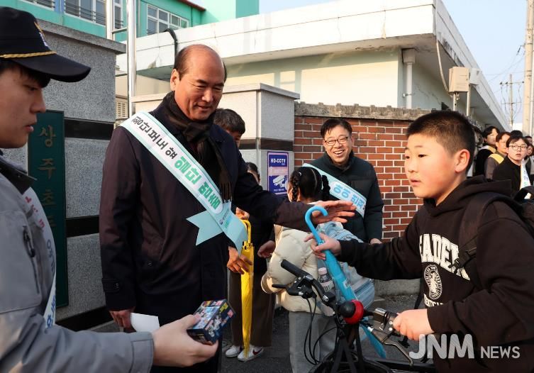 제이앤엠뉴스 | 상주시는 3월 17일 오전 8시 상주초등학교 후문에서 어린이 등굣길 교통안전 캠페인을 진행했다.
