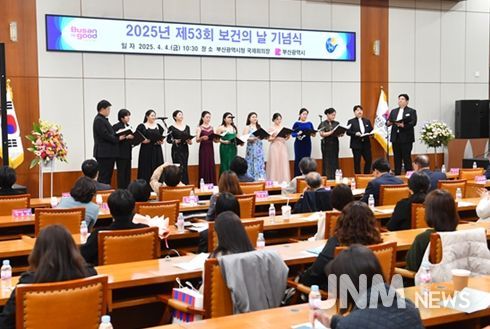 이번 기념식은 '건강이 기본이 되는 사회, 모두가 누리는 대한민국'을 주제로 진행됐다. 행사는 유공자 시상, 기념사와 축사, 부산시립합창단의 축하공연 순으로 이어졌다. 부산시는 시민 건강 증진과 보건의료 분야 발전에 기여한 38명(보건의료인 27명, 공무원 11명)에게 시장 표창을 수여했다.