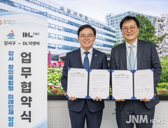 양 기관은 8일 오후 강서구청장실에서 창의융합형 미래인재 양성 업무협약을 맺었다. 이 자리에는 진교훈 강서구청장과 박상신 DL이앤씨 대표이사가 참석했다. 이번 협약에 따라 DL이앤씨는 지역 내 학생들에게 창의예술교육 프로그램을 제공하며, 강서구는 행정 지원을 담당한다.