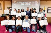 제이앤엠뉴스 | 양산시는 지난 18일 양산지혜마루 평생학습관 대강당에서 2025년 백세학당 초·중학 졸업식을 개최했다. 양산 백세학당은 환경이 허락지 않아 여러 사정으로 교육 기회를 놓친 성인을 위해 초·중학 교육과정을 실시하고 일정 기준을 수료하면 시장 명의 졸업장과 교육감의 학력인정을 받을 수 있는 성인문해 교육과정이다. 이에 양산시는 2010년부터 백세학당 사업을 추진해 올해 초등 18명, 중학 27명이 졸업했고, 누적 학습자 3,457명, 누적 졸업생 369명으로 꾸준히 많은 학력 인정 졸업생을 배출하고 있다. 졸업식은 졸업장 및 개근상, 표창장 수여, 시화전 상장 전수 외에도 졸업자의 축하 공연, 시화전(양산 백세학당 문예대회) 작품 전시 공간을 마련해 한 해의 성인문해 학습의 결실을 맺는 뜻깊은 자리가 됐다. 졸업자 대표 서영자 씨는 “어린 시절 가정형편으로 학업을 중단했으나, 늦은 나이에 배움의 뜻을 품고 백세학당에 입학해 3년간의 과정을 성실히 이수했다”며 “오늘의 졸업은 끝이 아닌 새로운 시작이라고 생각하고, 앞으로도 건강이 허락하는 한 고등과정까지 배움을 이어가고 싶다”고 소감을