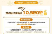 제이앤엠뉴스 | 17년 만에 노사 합의로 결정! 2026년 시간당 최저임금 10,320원 ■ 최저임금이란? 노동자의 생활 안정을 보장하고 더 나은 일자리 환경을 만들기 위해 임금의 최저수준을 보장하는 제도 ■ 월 환산액 2,156,880원(주 40시간 기준, 유급 주휴* 8시간 포함) *주휴수당: 근로자(1주 소정근로시간 15시간 이상)가 1주일 개근한 경우, 주 1회 유급휴일에 대해 지급되는 수당 ■ 포함되는 금액 - 매월 1회 이상 정기 지급하는 임금(매월 지급 상여금, 식비, 숙박비, 교통비 등) ■ 제외되는 금액 - 통화 이외의 것으로 지급하는 임금 - 소정근로 외의 임금(시간외수당 등) [뉴스출처 : 고용노동부]