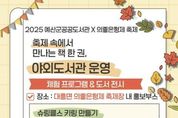 제이앤엠뉴스 | 예산군 공공도서관은 11월 8일부터 9일까지 이틀간 열리는 ‘2025 의좋은형제축제’ 현장에서 ‘야외 도서관’을 운영한다고 밝혔다. 이번 행사는 지역 주민과 관광객이 함께 즐길 수 있는 체험형 독서문화 프로그램으로 구성됐으며, 어린이부터 가족 단위 방문객까지 누구나 자유롭게 참여할 수 있다. 야외 도서관은 축제장 내 홍보부스에서 운영되며, 방문객들은 △슈링클스 키링 만들기 △걱정인형 만들기 등 다양한 창의 체험 활동을 즐길 수 있고 도서 전시 및 열람 공간을 마련해 관람객이 자유롭게 책을 읽으며 휴식할 수 있는 열린 독서문화 공간으로 운영될 예정이다. 이번 프로그램은 주민의 참여와 소통, 배움이 어우러지는 독서·체험의 장을 조성하기 위한 취지로 마련됐다. 야외 도서관은 축제 기간인 11월 8일과 9일 오전 10시부터 오후 4시까지 운영되며, 참가 신청은 현장에서 선착순으로 접수한다. 공공도서관 관계자는 “이번 야외 도서관 운영을 통해 주민들이 도서관을 보다 친숙하게 느끼고, 책과 함께하는 문화를 자연스럽게 경험하길 바란다”고 말했다. [뉴스출처 : 충청남도 예산군]