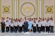 제이앤엠뉴스 | 이재명 대통령이 5일 2026 밀라노-코르티나 동계올림픽에 참가한 대한민국 국가대표 선수단을 청와대로 초청해 오찬을 마련했다. 이번 행사는 새 정부 출범 이후 처음 열린 올림픽대회에서 뛰어난 도전정신을 보여준 선수단에게 국민을 대표해 감사를 전하는 자리였다. 오찬에는 기록 경신과 한계 극복으로 국민에게 감동을 준 국가대표 선수와 지도자, 정부 관계자, 종목 단체장, 대회 기간 현지에서 식사를 지원한 급식지원센터 조리사 등 약 100명이 참석했다. 최가온(설상종목 첫 금메달리스트), 최민정(역대 최다 올림픽 메달리스트), 김길리(대회 MVP), 정승기(척추 부상 극복 선수) 등 다양한 사연을 가진 선수들이 함께했다. 이재명 대통령은 격려사에서 선수들의 노력을 치하하며 "여러분들이 대한민국의 자부심"이라고 말했다. 이어 "국가대표 선수 한 분 한 분이 모두 국민 영웅들"이라며 동계스포츠 발전을 위한 지원을 약속했다. 또한 경기 시설과 훈련 인프라 확충, 국제 대회 시청 제도 개선 의지도 밝혔다. 선수 대표로 최가온은 운동선수의 성취가 개인 노력뿐 아니라 주변의 격려와 경쟁자들의 땀에서 비롯된다고 강조하며, 실력과 인성을 갖춘 선수가 되겠다고 다짐