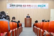 제이앤엠뉴스 | 경남도의회는 10월 23일 도의회 도민공연장에서 도의원과 고위직 공무원을 대상으로 4대폭력 예방교육을 실시했다. 이번 교육은 성희롱, 성폭력, 성매매, 가정폭력 등 ‘4대 폭력’에 대한 이해를 높이고, 건강하고 안전한 조직문화를 조성하기 위해 마련됐다. 최학범 의장은 “4대 폭력은 공직의 기본인 신뢰를 해치는 심각한 범죄”라며, “공직자로서 누구보다 높은 도덕성과 책임의식을 가져야 한다”고 강조했다. 이어 “오늘 교육을 통해 폭력과 차별이 없는 안전하고 건강한 의회를 만드는 데 앞장서 달라”고 당부했다. 이번 교육은 한국양성평등교육진흥원 폭력예방 통합교육 전문강사인 창녕경찰서 김판수 경감을 초빙해 진행됐으며, 성희롱, 성폭력, 성매매, 가정폭력 예방을 통합적으로 다루었다. 교육에 참여한 도의원을 포함한 고위직 공무원들은 “공직자로서 가져야 할 윤리의식과 상호 존중의 중요성을 다시 한 번 느낄 수 있었다”고 소감을 밝혔다. 경남도의회는 앞으로도 고위직 공무원 대상으로 4대폭력 예방교육을 지속 실시하며, 건강하고 신뢰받는 의정문화 조성에 앞장설 계획이다. [뉴스출처 : 경상남도의회]