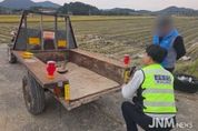 제이앤엠뉴스 | 무안경찰서(서장 정성일)는 가을 수확철을 맞아 농촌지역에서 빈발하는 야간 농기계 교통사고 예방을 위한 시책을 적극 추진하고 있다. 이번 조치는 무안 전 지역을 대상으로 경운기·트랙터 등 농기계에 태양광 경광등(일명 ‘쏠라 뱅뱅이’)을 부착하는 시책으로, 어두운 밤길에서도 농기계의 존재를 명확히 인식할 수 있도록 하여 2차 사고를 예방하는 데 목적이 있다. 특히 이번에 도입된 자석식 경광등은 농기계에 별도 구멍을 뚫거나 훼손하지 않고도 간편하게 부착할 수 있어 농민들로부터 큰 호응을 얻고 있다. 또한 태양광 충전식으로 별도의 전원 없이도 장시간 사용 가능해 유지비 부담이나 관리에 용이 하다는 점이 큰 장점이다. 또한 위험한 농기계 발굴은 실시간으로 112 신고 모니터링과 함께 순찰 중 등화장치가 없거나 파손된 위험 농기계 발견 시 즉시 해당 농기계 소유주를 찾아가 경광등 부착 및 형광조끼 등 안전용품을 지급해주고 있다. 정성일 무안경찰서장은 "작은 경광등 하나가 생명을 지키는 빛이 될 수 있다며 현장에서 발로 뛰는 생활밀착형 교통안전활동을 통해 사