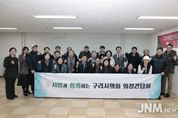 제이앤엠뉴스 | 구리시의회는 2월 10일 18시 30분 성원아파트 관리사무실에서 구리발전위원회(회장 조권행)와 간담회를 개최했다. 이날 간담회에는 신동화 의장, 김성태 부의장, 정은철 운영위원장, 권봉수 의원, 양경애 의원과 구리발전위원회 회원 등 25여 명이 참석했다. 이번 간담회는 구리시민과 밀접한 민생현안 및 향후 구리시 발전 방향에 대해 시민들의 의견을 청취하고, 건설적인 개선방안을 논의하기 위해 마련됐다. 구체적인 안건으로는 동인초등학교 앞 경사로 동절기 안전을 위한 열선 설치, 경춘로 등 구리시 진입로에 도로표지병 보완 설치, 동구릉 역사거리 조성사업 관련 예산의 효율적인 사용 및 공사자재 적치 등 공사 중 안전대책 미흡 사항 지적, 구리IC 방음터널 설치 지연에 대한 현황 청취 및 조속한 사업 추진 촉구 등의 안건이 제시됐다. 조권행 회장은 “구리시는 구도심 위주의 주거환경으로 복합적인 개선 필요점들이 산재해 있는 한편, 발전 가능성도 높은 지역”이라며, “시민들이 안전하고 쾌적하게 거주할 수 있는 환경을 만들기 위해 구리시의회에서도 적극적으로 행동해주기 바란다”고 말했다. 신동화 의장