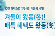 제이앤엠뉴스 | 경기도와 경기도주식회사가 공동 운영하는 경기도 공공배달앱 배달특급이 겨울을 맞아 12월 한 달간 ‘겨울이왔동(冬)’ 소비자 할인 프로모션을 진행한다. ‘겨울이왔동(冬)’ 소비자 할인 이벤트는 ‘통 큰 세일’ 프로모션 종료 등으로 아쉬움이 남는 소비자들의 편익을 증대하기 위해 마련했다. 배달 특급 전체 회원, 전체 서비스 지역을 대상으로 1만2천원 주문에 사용가능한 3천원 할인 쿠폰을 예산 소진시까지 1일 1인 1회 지급한다. 한편 배달특급의 모든 이벤트는 해당 상단 배너 기능을 통해 확인 가능하며, 지역에 따라 할인 조건과 금액이 달라질 수 있어 사전 확인이 필요하다. [뉴스출처 : 경기도청]