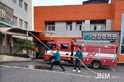 제이앤엠뉴스 | 예천군보건소는 16일 오후 2시, 예천군보건소 전정에서 예천소방서 119안전센터와 함께 합동 소방훈련을 실시했다. 이날 훈련에는 119안전센터와 보건소 자위소방대 등 직원 70여 명이 참가해 화재 발생 시 119 신고요령과 관내 방송을 통한 상황전파훈련에 이어 소화기와 옥내 소화전을 활용한 초기진화 훈련을 실시해, 작은 불씨도 키우지 않는 골든타임의 중요성을 체감했다. 특히, 119안전센터의 도움으로 연기 발생기를 사용해 건물 내부에 연기가 가득한 상황을 재현하여 실제 화재 상황과 유사한 환경으로 보다 실전적인 훈련을 했다. 이를 통해 실제 화재 시 발생할 수 있는 다양한 상황에 체계적으로 대응할 수 있는 능력을 기를 수 있었다. 안남기 보건소장은 “공공기관은 많은 사람이 오가는 장소로 철저한 화재예방과 신속 정확한 화재 대응이 매우 중요하므로 주기적인 소방훈련으로 화재에 대한 경각심을 높이는 한편, 청사 안전관리에 최선을 다하여 보건소 이용 군민들의 안전 확보에 최선을 다하겠다”고 말했다. [뉴스출처 : 예천군보건소]