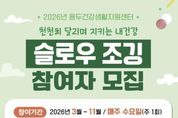 제이앤엠뉴스 | 제천시보건소 용두건강생활지원센터는 최근 조깅을 선호하는 운동 트렌드를 반영해 천천히 달리며 지키는 내 건강! 『슬로우 조깅(Slow Jogging)』 프로그램을 3월부터 본격 운영한다. 이번 프로그램에는 ‘걷기에서 뛰기로’ 자연스럽게 이어지는 중강도 신체 활동을 안전하게 경험할 수 있도록 대원대학교와 업무협약(MOU)을 체결하고, 재활운동 전공 교수진이 직접 참여한다. 프로그램은 주 1회, 총 4회 과정으로, 매주 수요일 오전 10시부터 11시까지 용두건강생활지원센터 주민참여실과 하소천 일원에서 진행된다. 3월에 1기 운영을 시작으로 2기(4월), 3기(5월), 4기(9월), 5기(10월), 6기(11월) 순으로 참여자를 모집해 지속적으로 신체 활동 참여 기회를 확대해 나갈 계획이다. 슬로우 조깅(Slow Jogging)은 걷기보다 약간 빠른 속도로 숨이 차지 않고 대화가 가능한 수준에서 천천히 달리는 유산소 운동으로, 체력 부담이 적어 운동 경험이 적은 주민도 무리 없이 참여할 수 있어 중장년층과 노년층 모두에게 적합한 생활밀착형 운동 프로그램이다. 제천시보건소 관계자