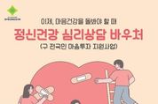 제이앤엠뉴스 | 경산시는 우울, 불안 등 정서적 어려움이 있는 시민에게 대화 기반의 전문심리상담 서비스를 제공하는 '정신건강 심리상담 바우처사업'을 시행한다. 이 사업은 전문적인 심리상담 서비스 바우처를 제공하여 시민의 마음 건강을 돌보고 자살을 예방하며, 정신질환을 사전 예방하는 것을 목적으로 한다. 지원 대상은 ▲정신건강복지센터, 대학교상담센터, 청소년 상담복지센터, Wee센터 등에서 심리상담이 필요하다고 인정하여 의뢰서를 발급받은 자 ▲정신의료기관에서 심리상담이 필요하다고 인정하여 소견서를 발급받은 자 ▲국가 건강검진 중 정신건강 검사 결과에서 중간 정도 이상의 우울이 확인된 자 ▲자립 준비 청년 및 보호 연장 아동 ▲'동네의원 마음 건강 돌봄 연계 시범 사업'통해 의뢰된 자 ▲재난 피해자(본인, 유가족) ▲ 정신건강복지센터·자살예방센터 등록 회원이다. 대상자는 증빙서류를 지참하여 주소지 읍·면·동 행정복지센터를 방문하거나 온라인 복지포털(복지로)에서 신청할 수 있다. 선정된 대상자에게는 바우처 생성일로부터 120일 이내 대화 기반의 전문 심리상담 서비스를 총 8회 이용할 수 있는 바우처가 제