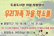 제이앤엠뉴스 | 대구두류도서관은 10월 18일부터 31일까지 어린이실에서 선착순 40가족을 대상으로 책과 소풍 물품을 함께 대여하면 머리띠와 퍼즐을 증정하는‘우리가족 가을 책소풍’행사를 실시한다. 참여를 원하는 가족은 어린이실에 방문하여 도서관 회원증을 제시하고 책과 돗자리, 간이의자, 미니테이블, 독후활동지, 보드게임 등 소풍에 필요한 물품을 대여하고 당일 오후 5시까지 반납하면 된다. 기타 자세한 내용은 도서관 누리집 또는 어린이실로 문의하면 된다. [뉴스출처 : 대구시교육청]