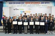 제이앤엠뉴스 | 제주의 고등학생들이 졸업 후 일자리를 찾아 섬을 떠나지 않고, 고향에서 신재생에너지 전문가로 성장할 수 있는 길이 열렸다. 제주특별자치도와 제주특별자치도교육청은 4일 오후 2시 탐라홀에서 제주대학교, 두산에너빌리티, 제주에너지공사, 서귀포산업과학고등학교와 '제주형 협약고등학교(에너지 분야)' 운영을 위한 업무협약을 체결했다. 이번 협약은 교육부의 지역 정주 기반 인재 양성 정책 기조에 맞춰, 학교가 지역 산업 수요에 부합하는 인재를 양성하고 기업은 이를 채용·육성해 제주에 정착시키는 선순환 구조를 구축하기 위해 마련됐다. '제주형 협약고등학교'는 지역 전략산업을 중심으로 도와 교육청, 대학, 기업이 각자의 자원을 모아 학생 맞춤형 교육과정을 운영하는 모델이다. 도와 교육청은 서귀포산업과학고등학교를 '제주형 협약고등학교'로 지정하고, 지역 전략산업과 연계한 에너지 분야 전문인력 양성을 위해 행정적·재정적 지원을 체계적으로 추진한다. 학생들은 신재생에너지 설비 교육과 전기기능사 등 관련 자격증 취득을 통해 실무 역량을 갖추게 되며, 졸업 후에는 제주 지역 기업 취업 또는 대