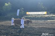제이앤엠뉴스 | 강원특별자치도와 홍천군이 공동 주최하고, 홍천 겨리농경문화 보존회가 주관한 ‘2025년 도지정 무형유산 「홍천 겨리농경문화」 공개행사’가 10월 22일, 홍천군 화촌면 구성포리 681번지 일원에서 성황리에 개최됐다. 이번 행사는 도지정 무형유산으로 지정된 ‘겨리농경문화’의 대중적 이해와 보존 활성화를 위해 기획됐으며, 홍천농업고등학교 교장 및 학생 30여 명을 포함한 지역 주민 다수가 참석해 성황을 이뤘다. 행사에서는 두 마리 소와 사람이 협력해 쟁기를 끄는 전통 농법인 ‘겨릿소 밭갈이’ 시연이 진행됐고, 관람객이 직접 참여할 수 있는 소몰기, 소모는 소리 체험 등 전통 농경문화 체험 프로그램도 운영되며, 큰 호응을 얻었다. 특히, 이번 공개행사는 홍천 겨리농경문화 보존회 회원들이 전수장학생으로 지정된 이후 처음 열리는 행사로, 지역 주민과 학생들이 함께 어우러져 세대 간 전통문화 전승의 의미를 되새기는 뜻깊은 자리가 됐다. 행사에 참석한 홍천농업고등학교 관계자는 “직접 보고 듣고 참여할 수 있어 전통 농업기술을 생생하게 배우는 소중한 경험이 됐다”라며, “이러한 현장 중심의 전통