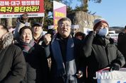 제이앤엠뉴스 | 대구·경북 행정통합 추진이 속도를 내는 가운데, 경북 북부권 주민들이 도청신도시 완성과 지역 균형발전을 촉구하며 공식적인 집단 행동에 나섰다. 예천·안동 지역 주민들은 2월 9일 오전 8시, 경상북도청 동문에서 ‘대구·경북 졸속 행정통합 규탄 집회’를 개최하고, 행정통합 논의 과정에서 경북 북부권의 역할과 위상이 명확히 보장되지 않은 통합은 불가하다는 입장을 공동으로 표명했다. 이날 집회에는 예천·안동 지역 단체 관계자와 지역 주민 200여명이 기자회견과 피켓 시위를 진행했으며, ▲현 경상북도청사를 통합특별시 주청사로 특별법에 명시할 것, ▲ 공공기관 이전, 재정지원은 경북 북부지역으로 우선 배분할 것 등을 핵심 요구사항으로 제시했다. 김학동 군수도 집회에 참석하여 “경북도청 이전과 도청신도시 완성은 국민과의 약속”이고, “예천군은 군민과 함께 도청신도시의 미래와 경북 북부권의 지속 가능한 발전이 제도적으로 보장될 때까지 적극적으로 대응해 나가겠다”고 밝혔다. 앞서 예천군은 대구·경북 행정통합과 관련해 공식 입장문을 통해 “도청신도시와 경북 북부권 발전이 명확히 보장되지 않는다면 통