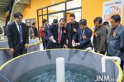 제이앤엠뉴스 | 강원특별자치도는 강원형 K-연어 생태계 조성의 첫 단계로 2월 26일(목) 10시 10분, 도 내수면자원센터에서‘K-어린연어생산센터 준공식’을 개최했다. 이날 행사에는 김진태 도지사, 해수부, 관련 단체, 도의원 등 100여 명이 참석하며, K-연어산업 비전과 본격 가동계획을 발표했다. K-어린연어생산센터는 총사업비 60억 원(국비 30억 원, 도비 30억 원)이 투입된 사업으로, 해양수산부 주관‘친환경양식어업육성사업’공모에 선정돼 건립됐다. 센터는 연면적 1,599㎡, 지상 2층 규모로 순환여과시스템 7개 모듈 사육조 30개, 부화실, 실험실, 분석실 등을 갖추고 있으며, 연간 5g급 연어 종자 200만 마리 생산이 가능하다. 도는 센터에서 생산한 건강한 연어 종자를 도내 내수면 양식어가에 공급하고 양식어가는 이를 100g급 스몰트로 성장시킨 뒤, 해수양식 산업단지에서 5kg급 성어로 키워 최종 출하하는 단계별 생산체계를 구축할 계획이다. 도는 앞서, 국내 지방자치단체 최초로 연구용 발안란을 도입, 담수에서 부화율 97% 이상을 달성하고 2023년 어린연어(150g급)