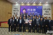 제이앤엠뉴스 | 국회 기후에너지환경노동위원장 안호영 의원(전북 완주·진안·무주)은 10월 2일, 농협중앙회로부터 감사패를 수상했다고 밝혔다. 이날 감사패 전달식에는 농협경제지주 박서홍 대표이사, 농협중앙회 전북본부 이정환 본부장을 비롯한 농축협 조합장 25명이 참석해 축하의 인사를 전했다. 안호영 위원장은 "오늘의 감사패는 저 개인을 위한 것이 아니라, 농업과 농촌을 지키기 위해 모두가 함께 펼쳐온 노력이 모인 결과"라며 "농업 경쟁력 강화와 농촌의 지속가능한 발전을 위해, 그리고 농업인 여러분과 농협이 처한 현실을 늘 기억하며 성심껏 최선을 다하겠다"고 밝혔다. 전달식 직후 열린 농정간담회에서는 △가축분뇨 퇴·액비 제조시설 규제 개선 △AI 기반 스마트팜 기술 확충 등 농축업계 주요 현안에 대한 논의가 이어졌다. 안 위원장은 농가의 어려움 해소를 위해 전북은 물론 전국의 농업인들과 소통해 나가겠다고 밝혔으며, “국회 기후에너지환경노동위원장으로서 기후·환경·에너지와 농업이 조화를 이루는 길을 열어가기 위해 최선을 다하겠다”고 덧붙였다. 한편, 안 위원장은 지난해 9월 가축분뇨 퇴·액비