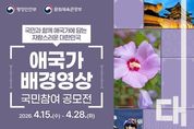 제이앤엠뉴스 | 문화체육관광부가 애국가 배경영상을 주제로 국민참여 공모전을 개최한다. 이번 공모전은 대한민국 국민이면 누구나 지원할 수 있으며, 접수 기간은 4월 15일부터 4월 28일까지로 정해졌다. 총상금 규모는 1억 3500만 원이다. 공모전과 관련된 문의는 안내된 전화번호(070-8806-1021)로 할 수 있다.